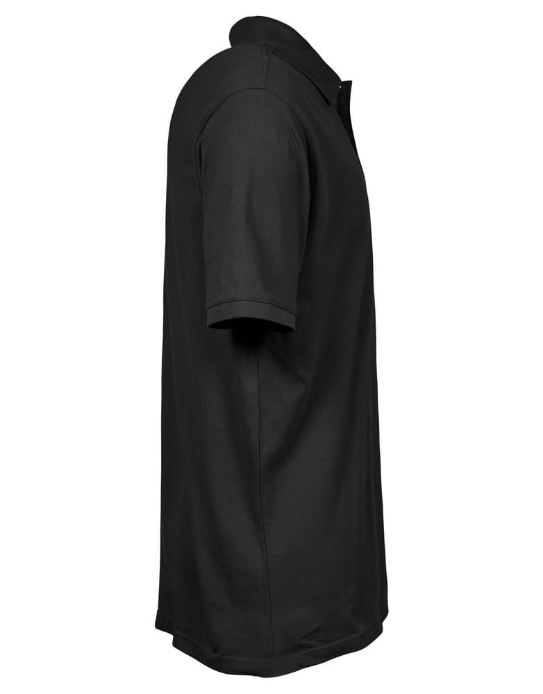 En stilfuld, moderne interlock polo shirt i 100% Pima bomuld, med en slank pasform. Den har en selvstof krave stand færdig med en elegant stolpelukning med antracit perle imitation knapper.